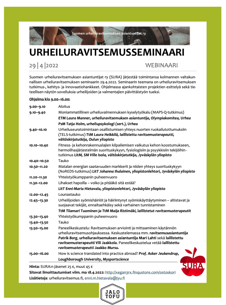 Kevään urheiluravitsemusseminaarin ohjelma on julkaistu!