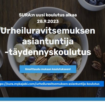 SURA:n Urheiluravitsemuksen asiantuntija -täydennyskoulutus alkaa 28.9. 2023